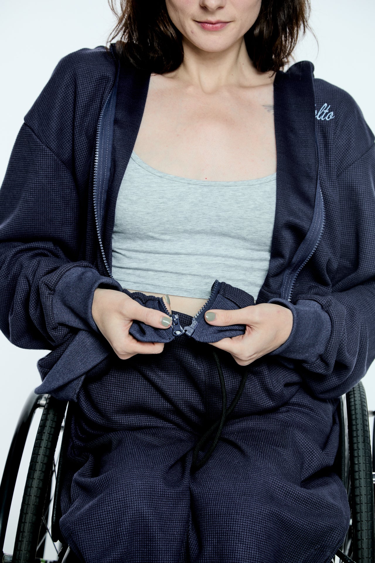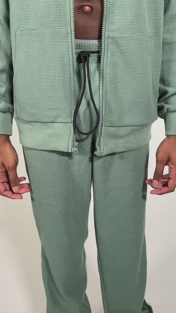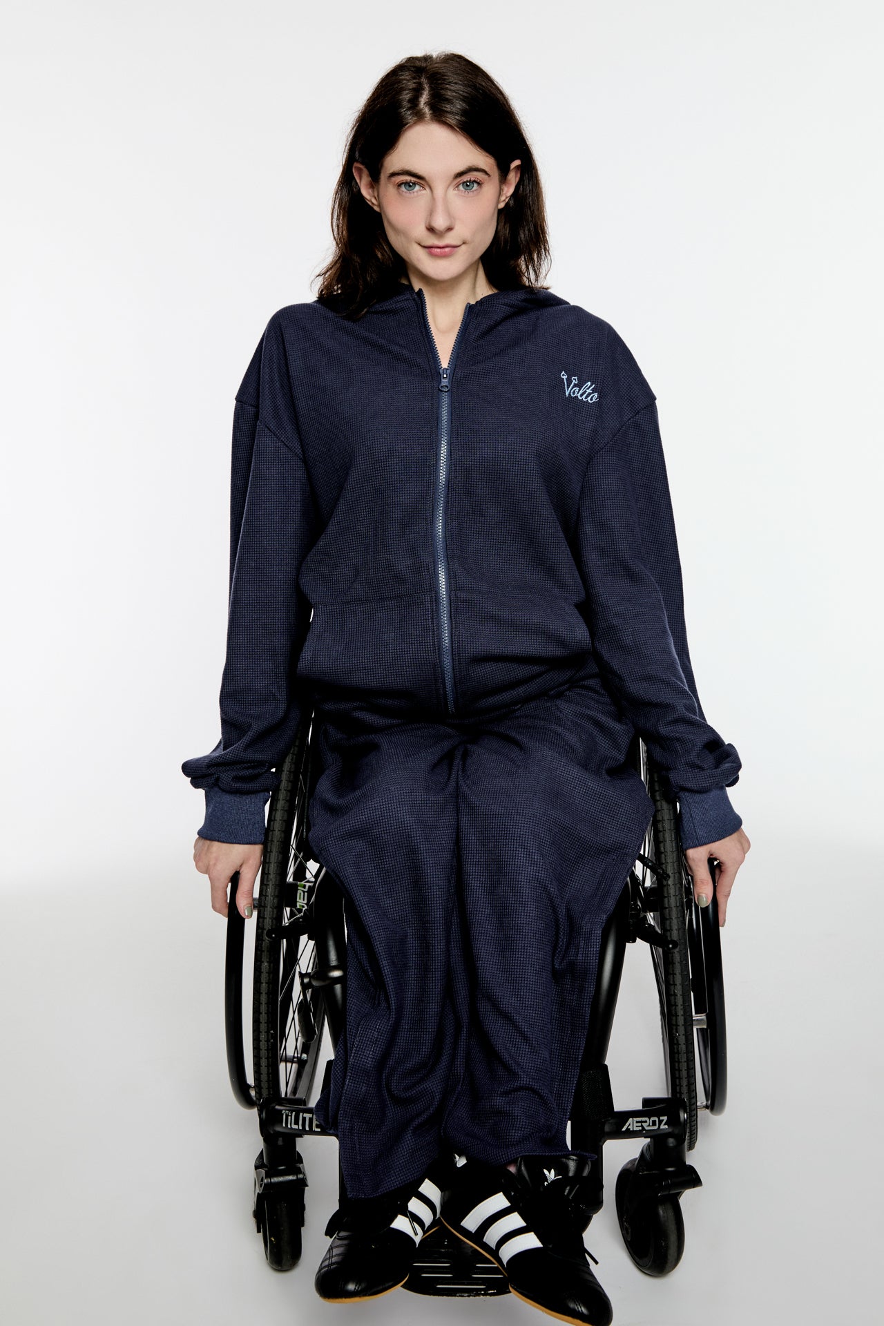 "Our Volto Script Waffle Zip-Up Hoodie. Made with a luxurious 265 GSM waffle fabric. This essential piece can be worn for any occasion and is designed to be worn year-round. Magnetic zipper solution provides for revolutionary fusion of style and convenience in this garment."